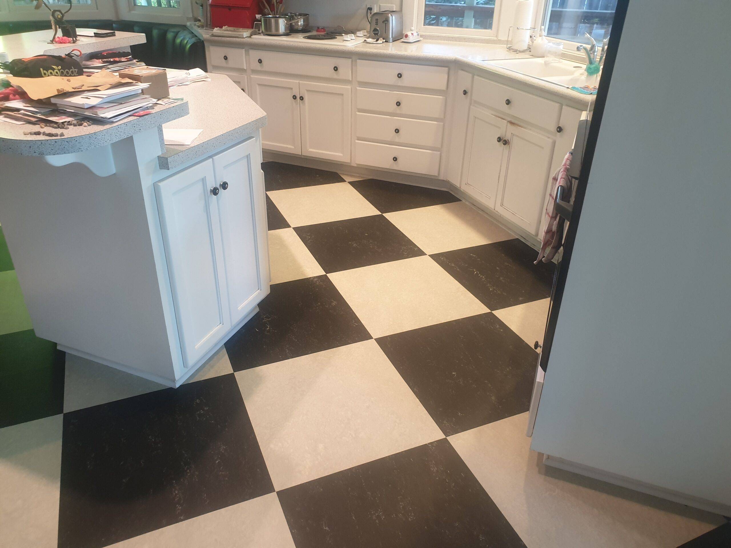 Whether you’re drawn to a classic black and white or want to try some new colors for a completely unique marmoleum checkered floor combo, our gallery offers inspiration for all aesthetics. View patterned marmoleum flooring images below and visit our marmoleum colors page to see more available pigments.